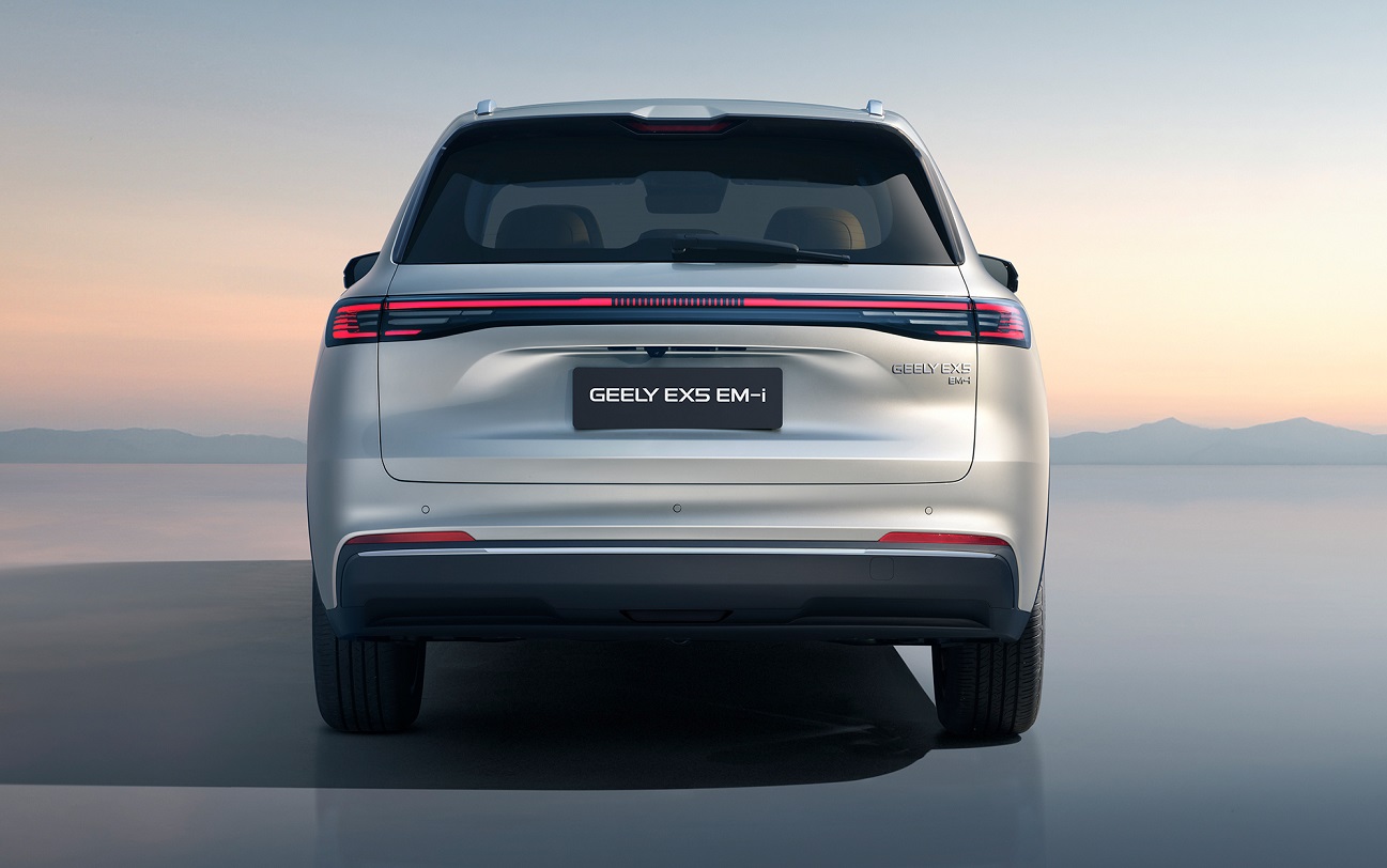 Длина Geely EX5 EM-i составляет 4 740 мм, ширина - 1 905 мм, колёсная база - 2 755 мм. Объём багажника - от 528 литров до 2 065 литров. Рейлинги на крыше имеют допустимую нагрузку до 50 кг. В оснащение вошли системы активной безопасности, в том числе предотвращение фронтальных столкновений, интеллектуальный круиз-контроль, контроль "слепых зон".