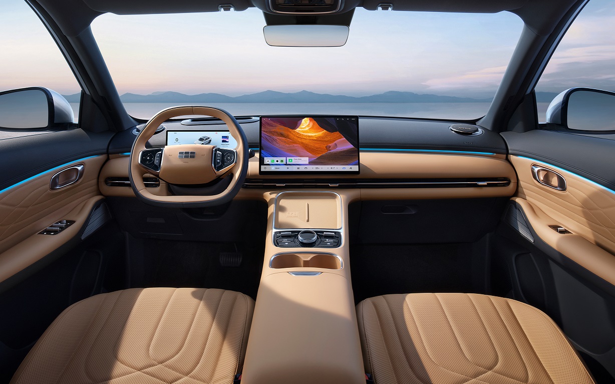 В салоне можно обнаружить 15,4-дюймовый экран мультимедийной системы, 10,2-дюймовую цифровую приборную панель. Есть премиальная аудиосистема Flyme Sound с 16 динамиками и сабвуфером, многослойные кресла с широким диапазоном регулировок, интерьерная подсветка (256 оттенков).