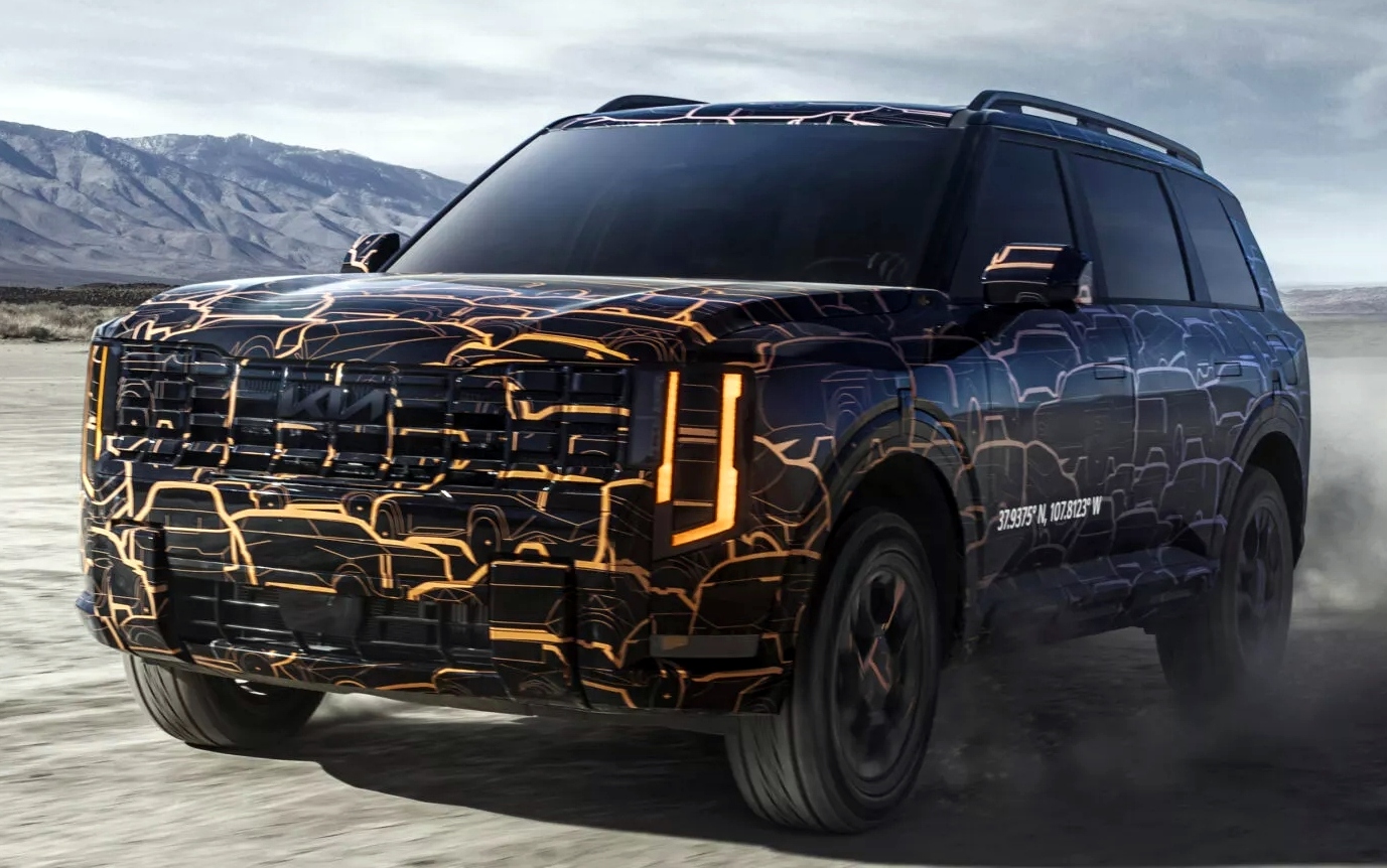 Судя по тизерам, новый Kia Telluride получит более обтекаемый кузов, новую решётку радиатора, вертикальные фары с С-образной графикой. Ранее фотошпионы заметили вариант с усиленным бампером с красными буксировочными крюками, что, вероятно, свидетельствует о наличии более внедорожной версии Palisade XRT Pro.