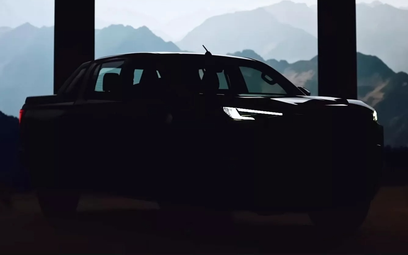 На снимках видны более тонкие светодиодные фары, более крупные воздухозаборники в переднем бампере, кузов с двойной кабиной, более угловатые задние светодиодные фонари.