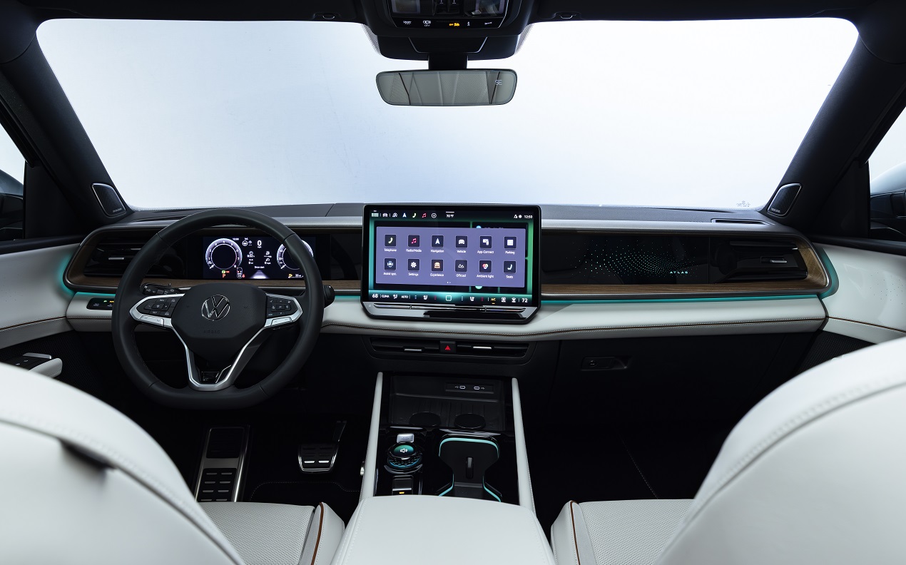 Все версии получат Volkswagen 10,25-дюймовую цифровую "приборку". У мультимеди системы 12,9-дюймовый экран в базовой комплектации, и 15-дюймовый тачскрин во всех остальных. Будут доступны отделка натуральным деревом, интерьерная подвеска, электропривод двери багажника, две беспроводных зарядки, вентилируемые сиденья второго ряда, аудиосистема Harman Kardon.