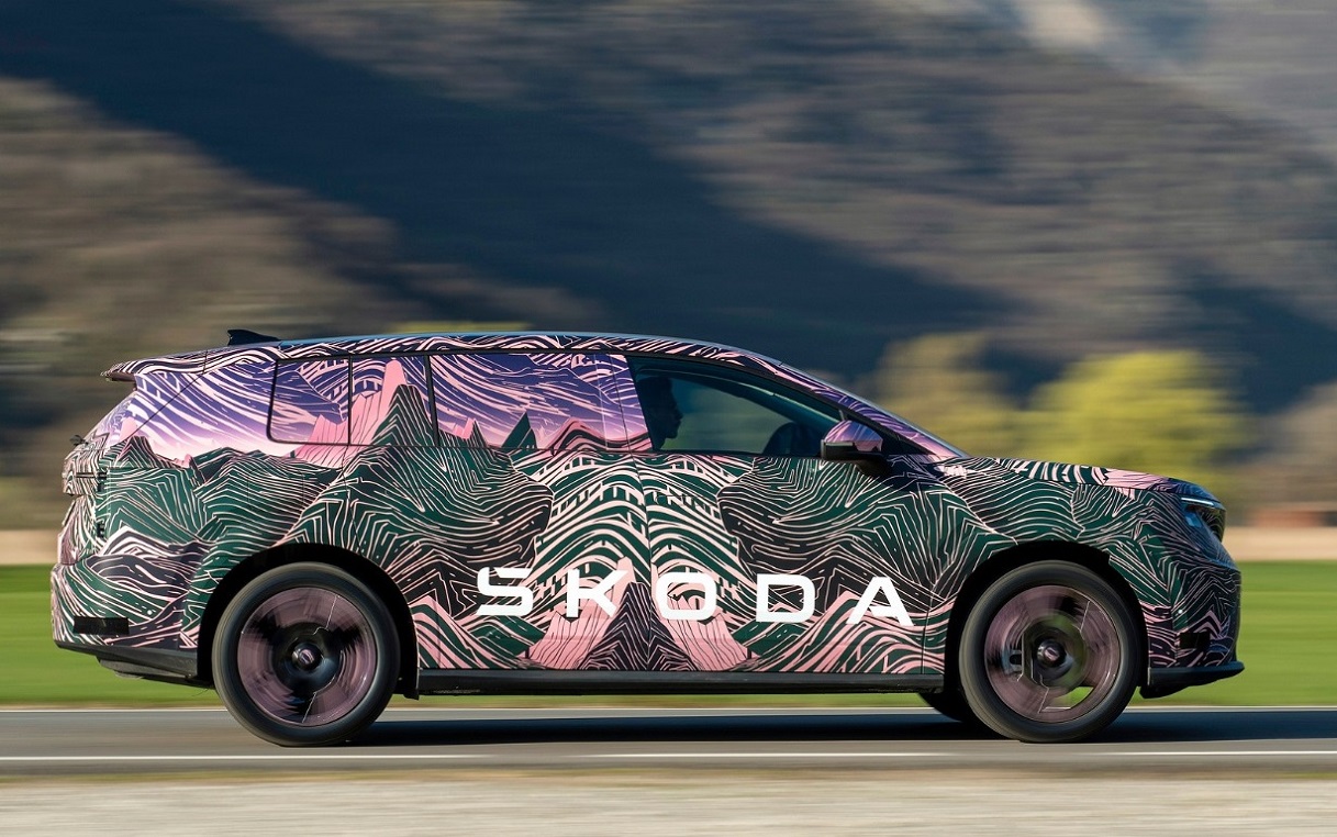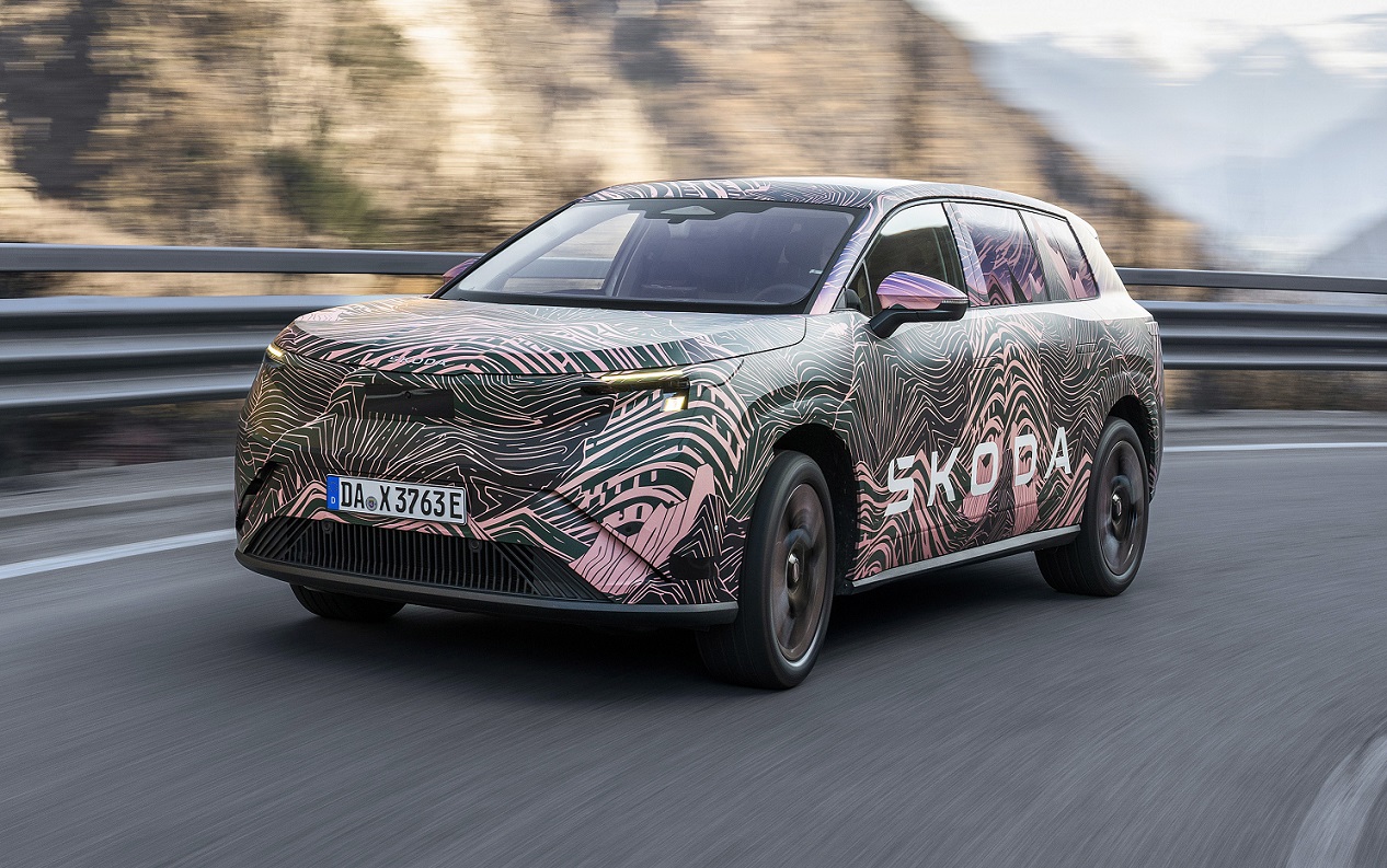 Компания Skoda показала свой новый большой электрический семиместный кроссовер Peaq. Пока новинка длиной 4,9 метра была представлен в камуфляже, а в продаже она будет доступна в десяти различных вариантах окраски.