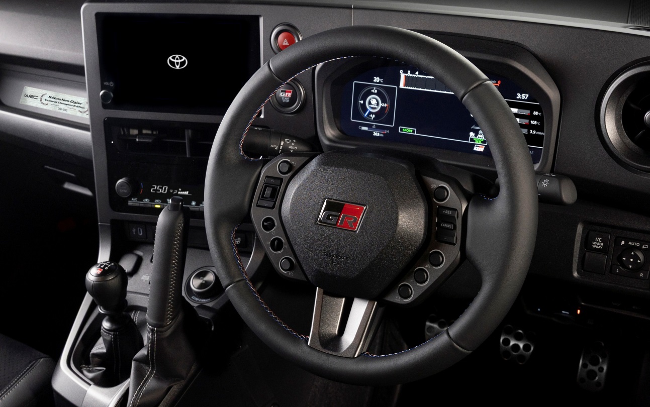 Внутри есть чуть уменьшенный руль, трёхцветная прострочка, цифровая приборная панель с уникальной графикой. Элементы управления переработаны по образцу автомобиля Rally2. Плюс номерная табличка - всего будет выпущено 200 экземпляров, из которых 100 отправят в Европу, а остальные разыграют в Японии в лотерею.