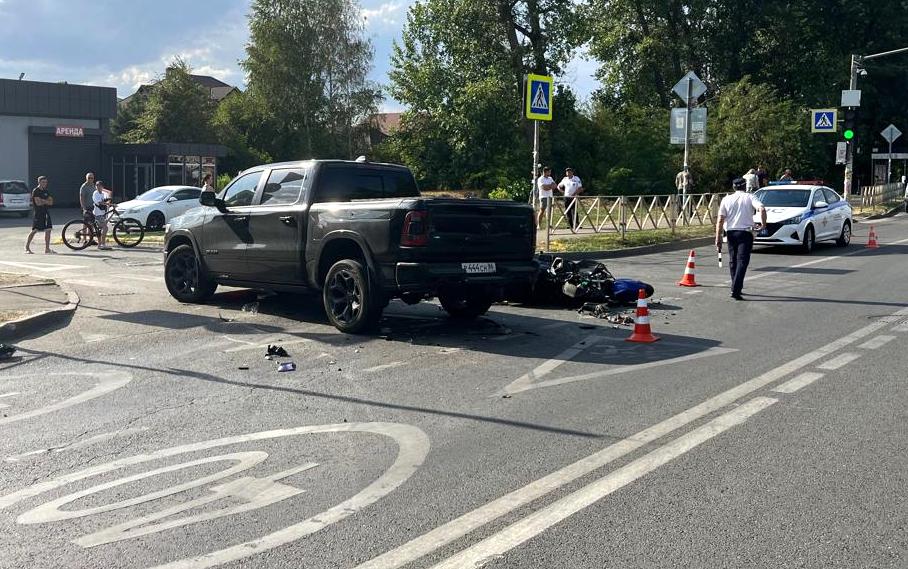 По данным полиции, водитель пикапа Dodge Ram двигался со стороны улицы Петра Метальникова в направлении улицы Ягодина. При повороте налево он не убедился в безопасности манёвра и столкнулся с мотоциклом.